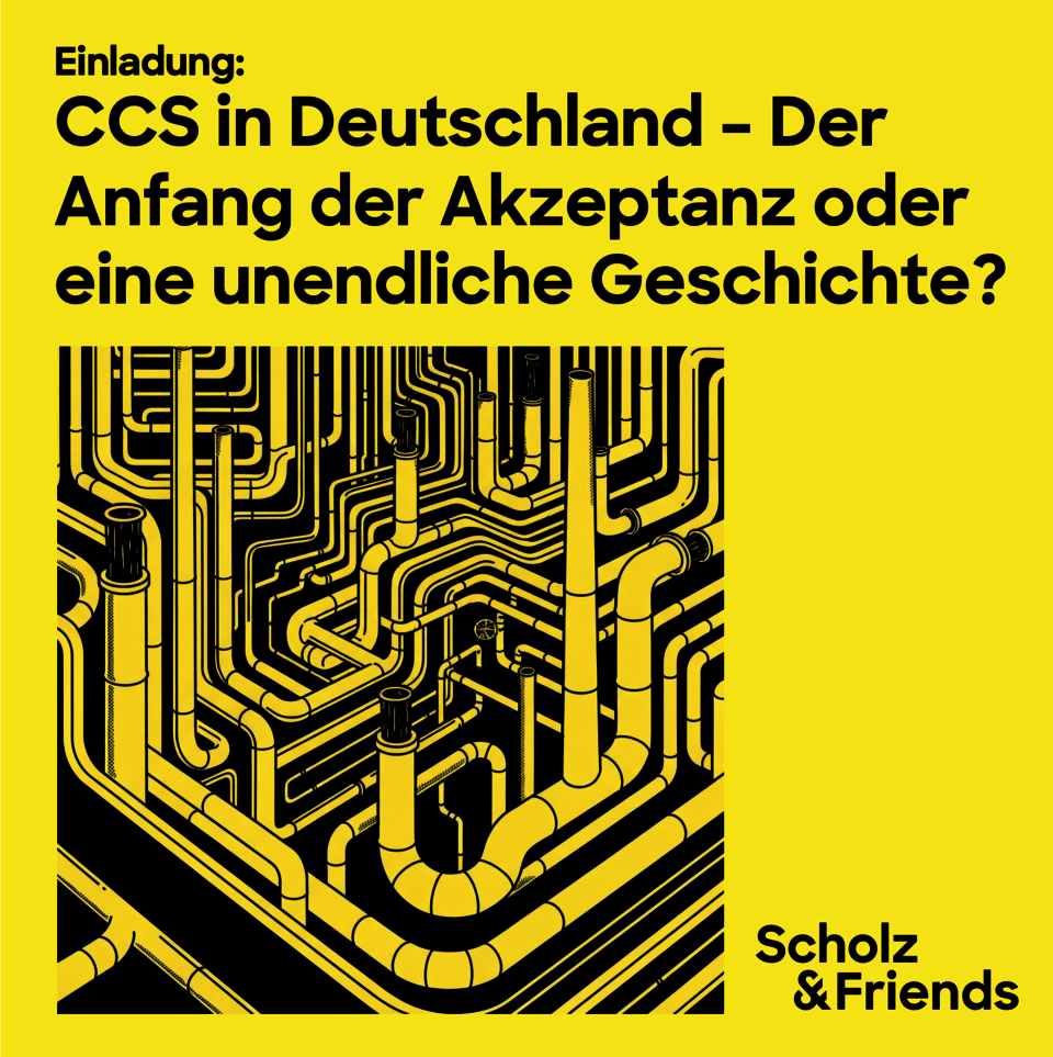 Am 26. November 2025 lädt Scholz & Friends zu einem Round Table zum Thema CCS-Kommunikation ein. Im Mittelpunkt steht die Frage: „CCS-Kommunikation: Der Anfang der Akzeptanz oder eine unendliche Geschichte?“ – wie kann Kommunikation rund um CO₂-Abscheidung und -Speicherung (CCS) gestaltet werden, um gesellschaftliche Akzeptanz zu fördern?