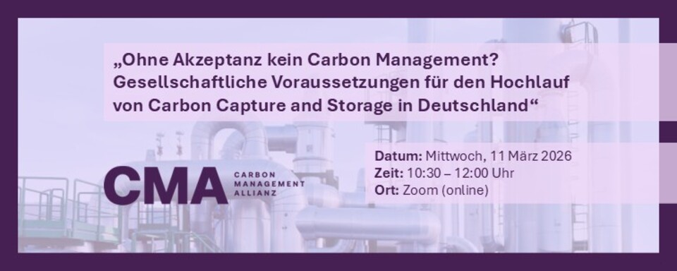 Webinar: „Ohne Akzeptanz kein Carbon Management? Gesellschaftliche Voraussetzungen für den Hochlauf von Carbon Capture and Storage in Deutschland“